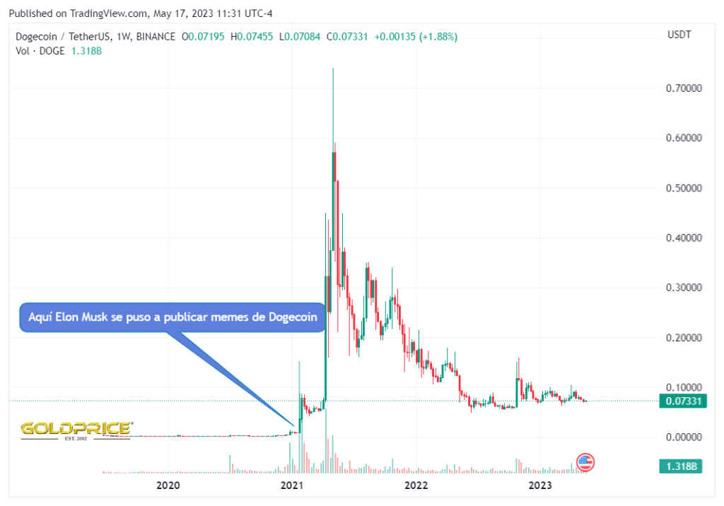 Mira este gráfico de Dogecoin. Mucha gente ha tirado su dinero a la basura.