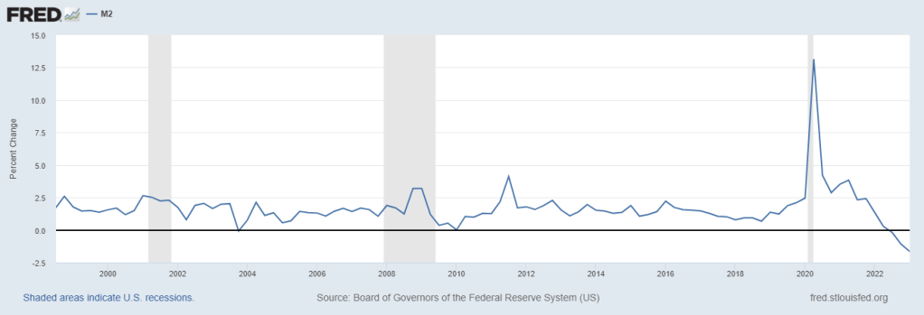 Mira este gráfico. Mide la variación en porcentaje del indicador M2 en EEUU