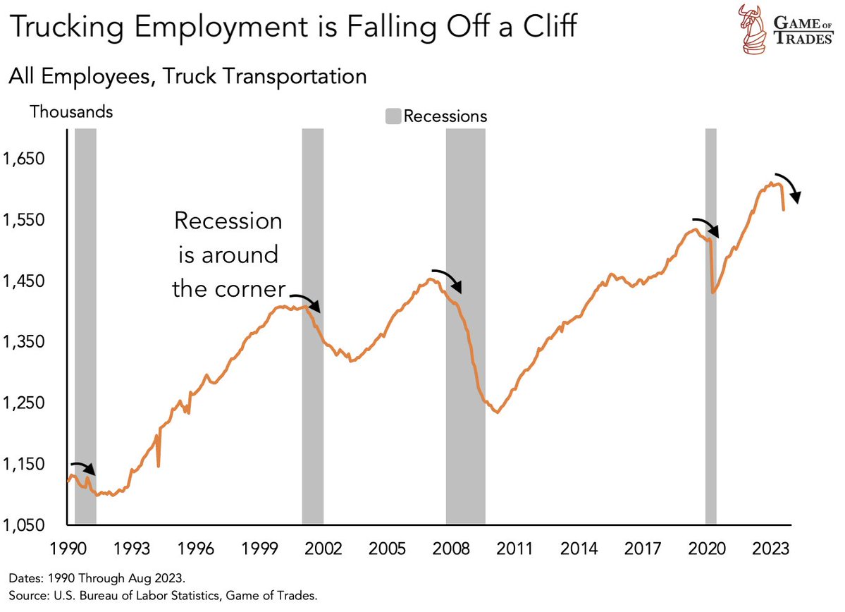 El descenso en los empleos del sector transporte por carretera suele ser un indicador adelantado de una recesión inminente ya que refleja la dinámica de la oferta y la demanda en la economía.