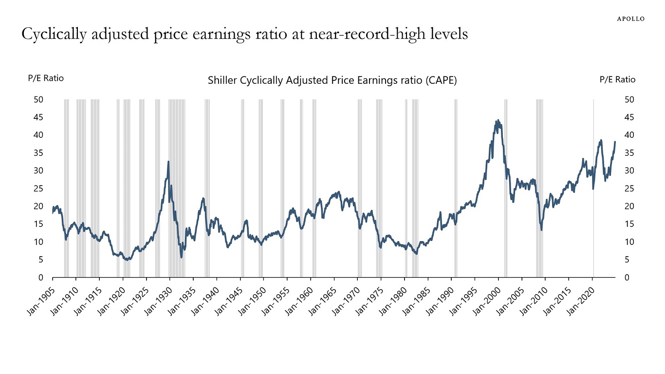 - El Ratio de Shiller se sitúa en 38, cerca de máximos históricos.